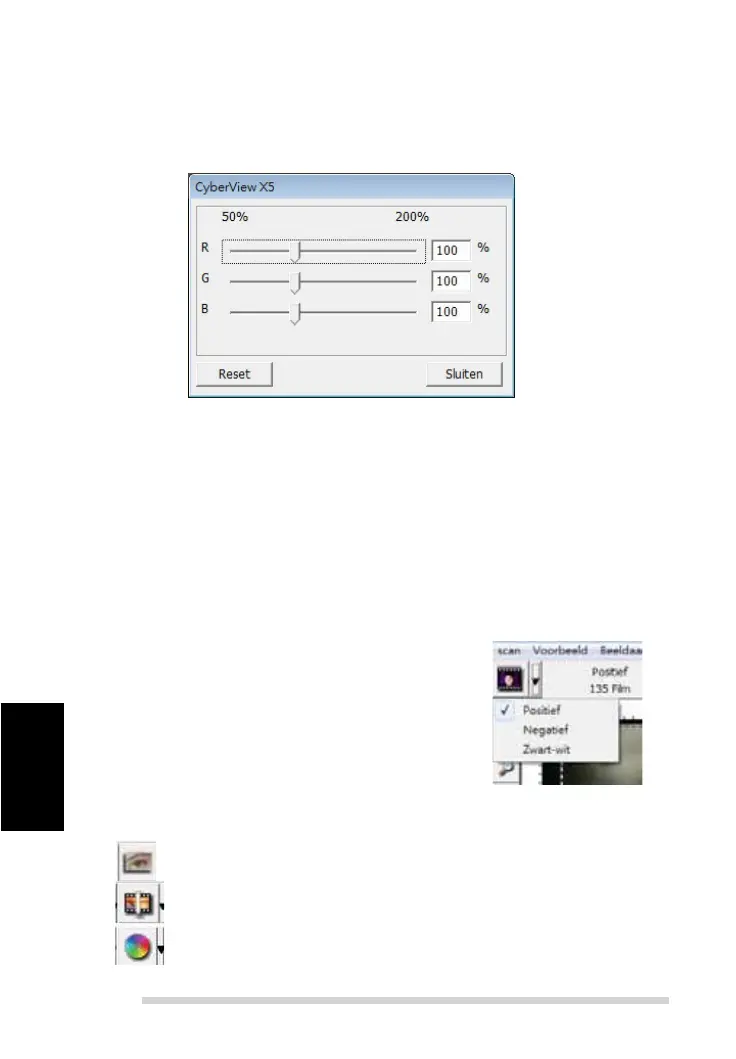 (R,G, B) op ”Reset” om de standaardinstelling te herstellen.