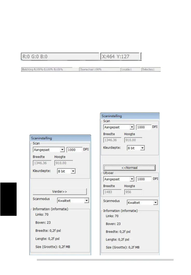 III. Scan Setting Area (Instelgebied scan) [zwevende vensters]