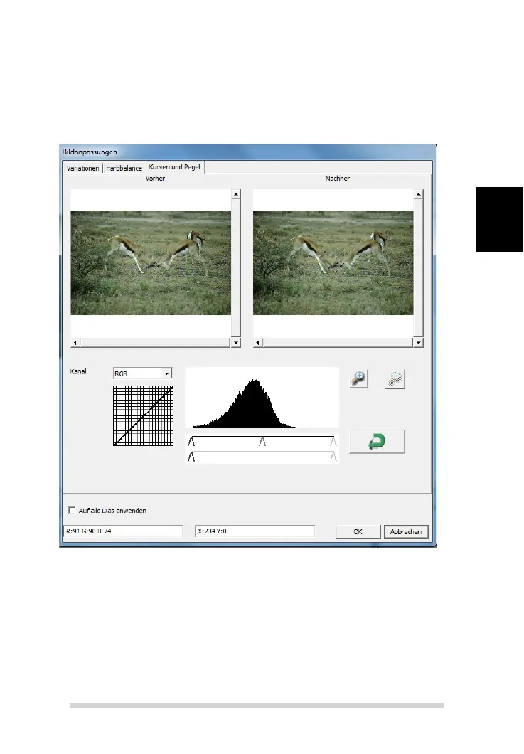 Beispiel: Ist die Vorschau eines Bildes zu dunkel, verwenden Sie den Schieber im Fenster