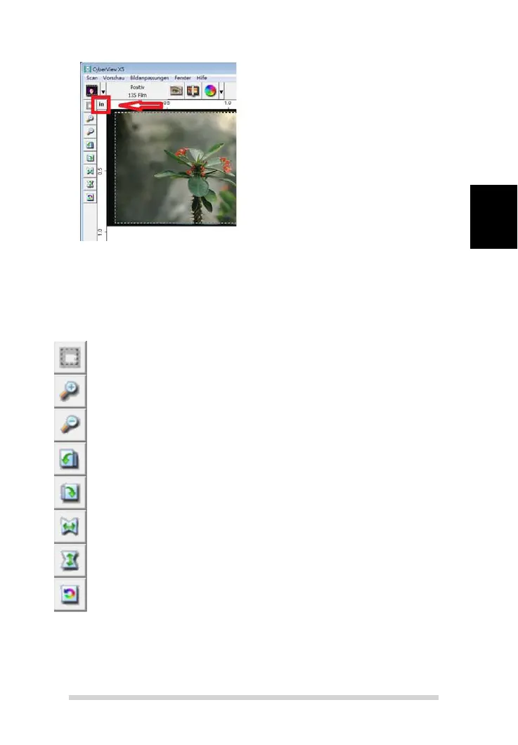 Zeigt einen Vorscan in der Vorschau an. Durch Anklicken der oberen linken Ecke