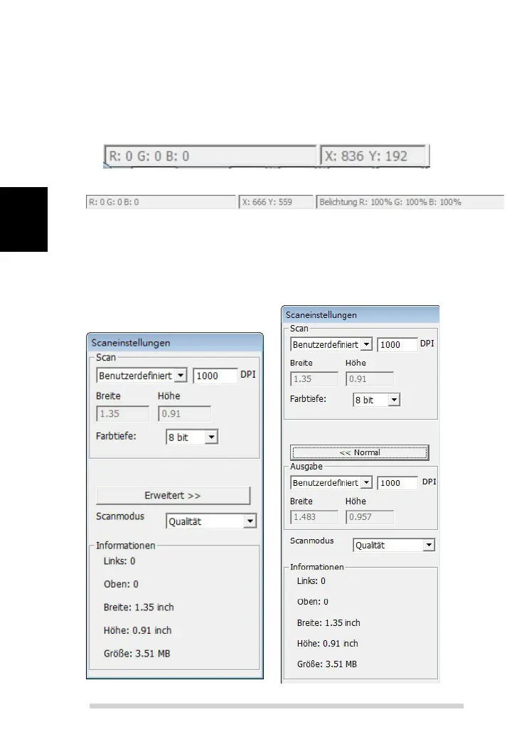 Scanausgabe, Scan-Auflösung und Farbtiefe