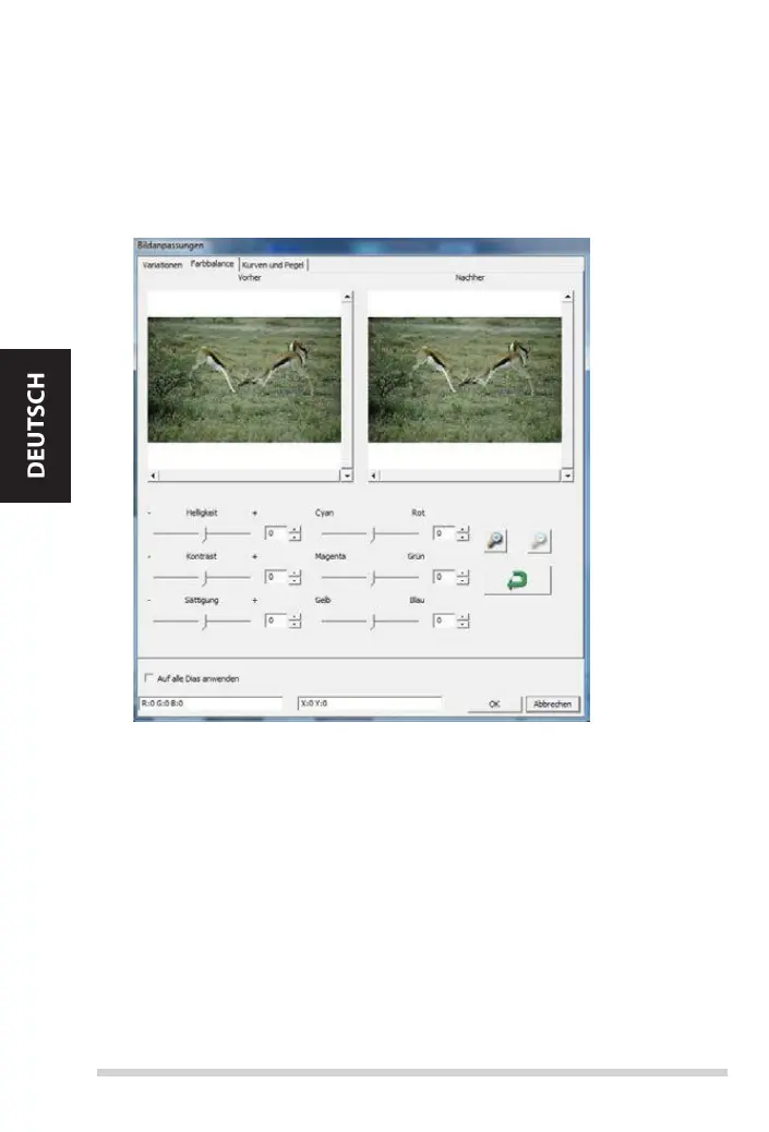 „Brightness“ (Helligkeit) im Fenster „Color Balance“ (Farbabgleich) und stellen mit ihm