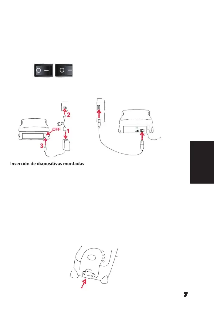 Conecte el escáner de diapositivas a una fuente de alimentación.