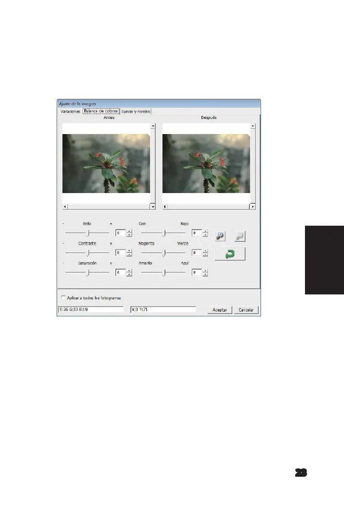 deslizante “Brightness” (Brillo) de la ventana “Color Balance” (Balance de color) para ajustar