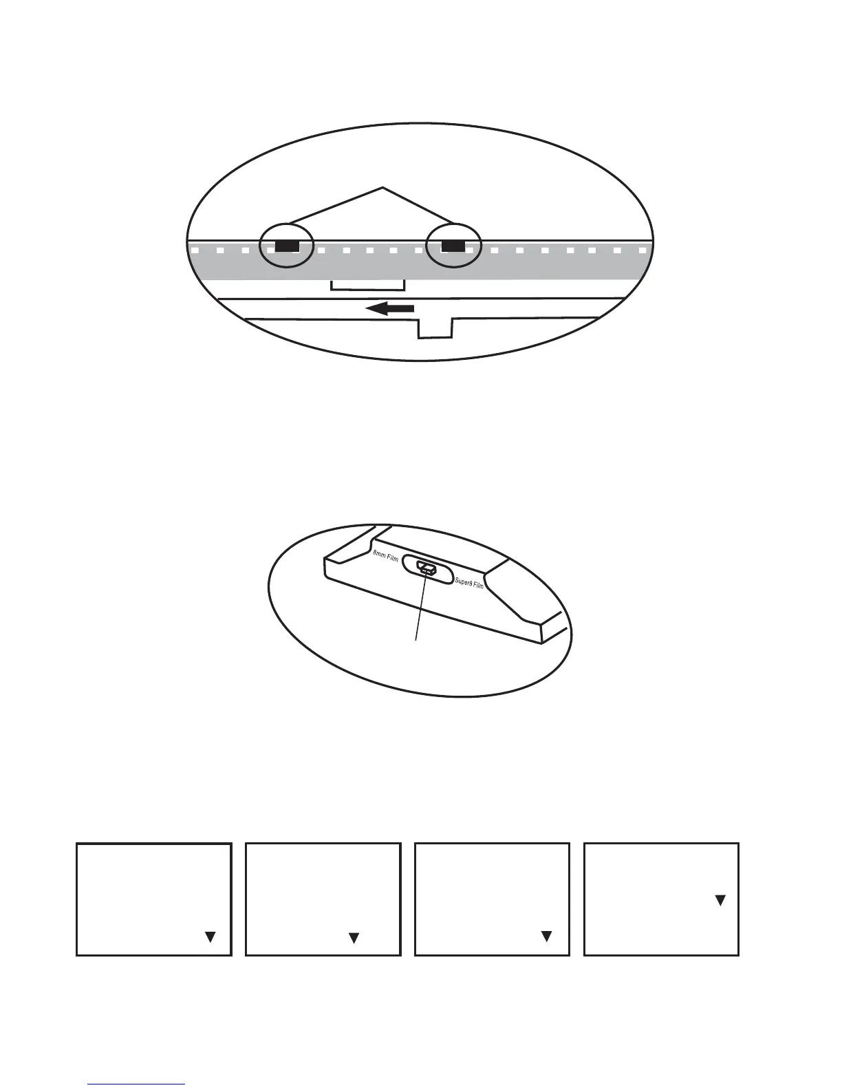 d. Premere per aprire lo sportello, porre i fori perforati della pellicola sulla