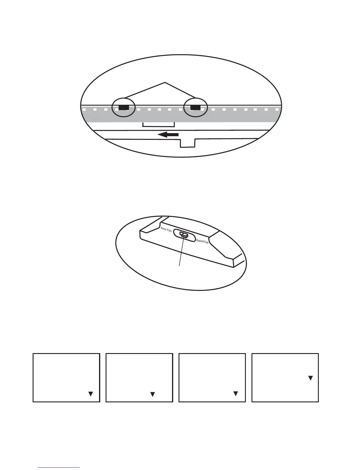 d. Duw de klep open, plaats de geperforeerde gaatjes van de film bovenaan,