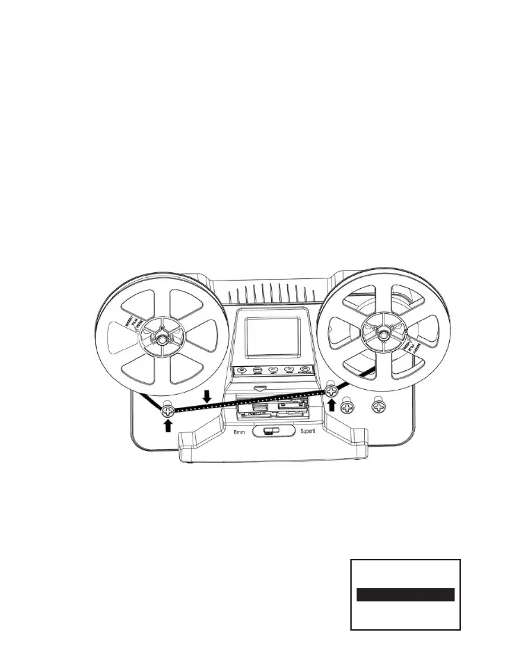 legen den Film mit der Perforation auf der Außenseite ein.