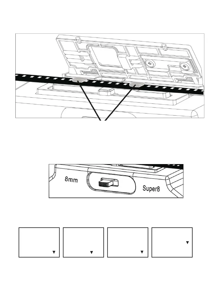 d. Premere per aprire lo sportello, porre i fori perforati della pellicola