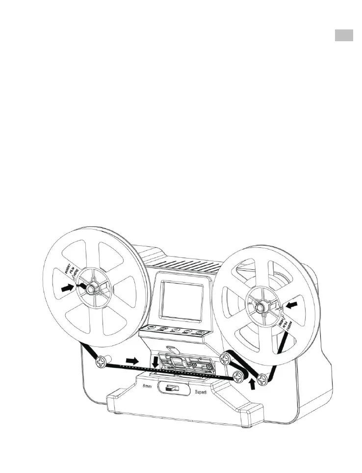 a. Als uw filmspoel een 8 mm (klein) montagegat heeft, dient u de