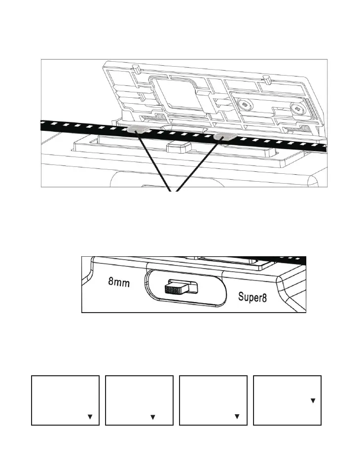 d. Duw de klep open, plaats de geperforeerde gaatjes van de film