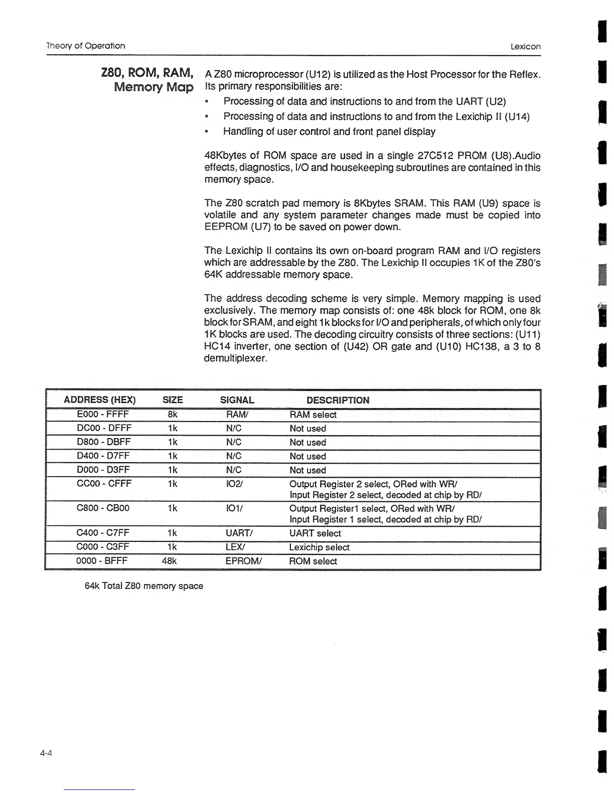 Reflex Lexicon - Z80 Processor and Memory Map Details