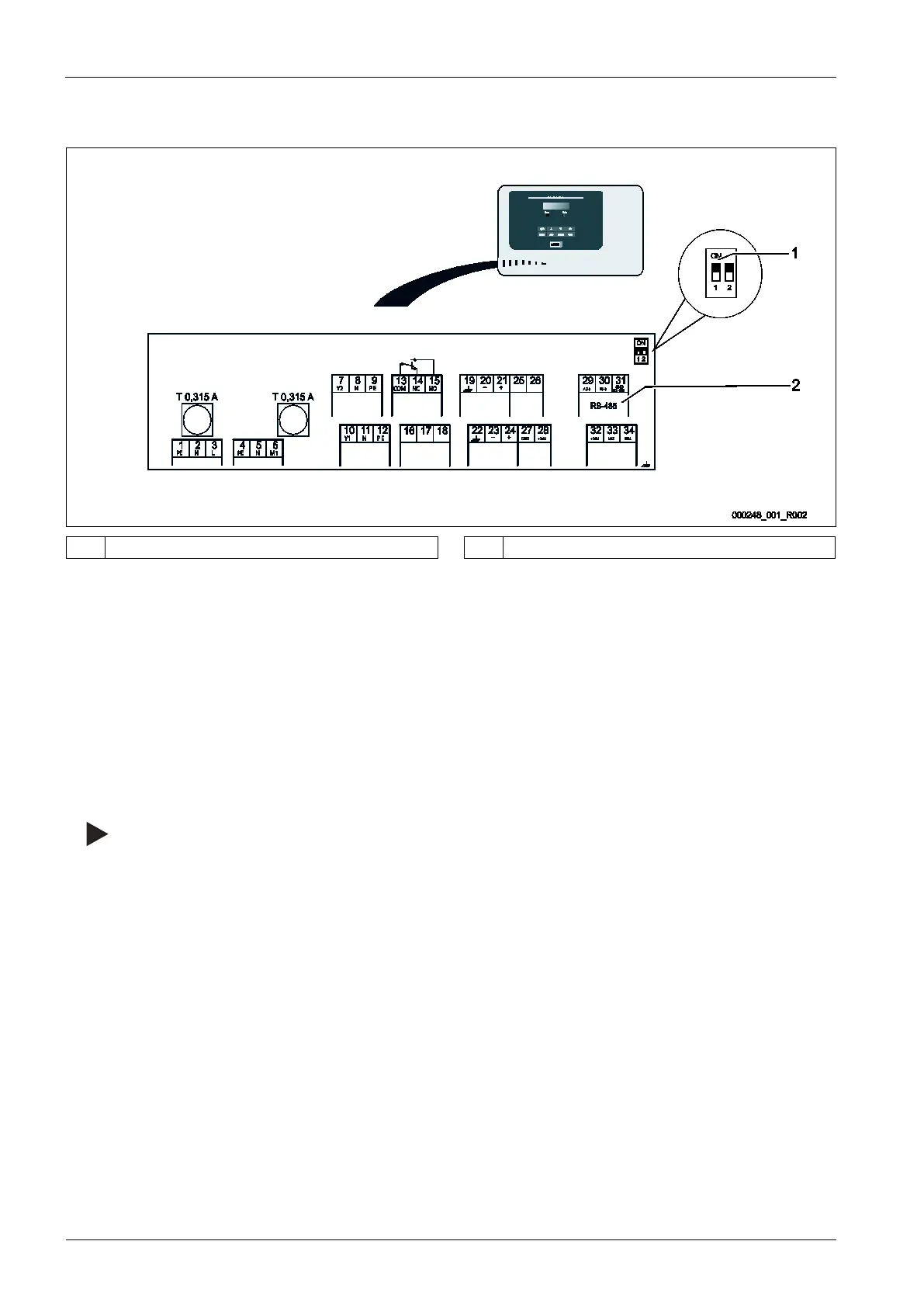 1 DIP switch 1 2 Connection terminals for RS-485 connection