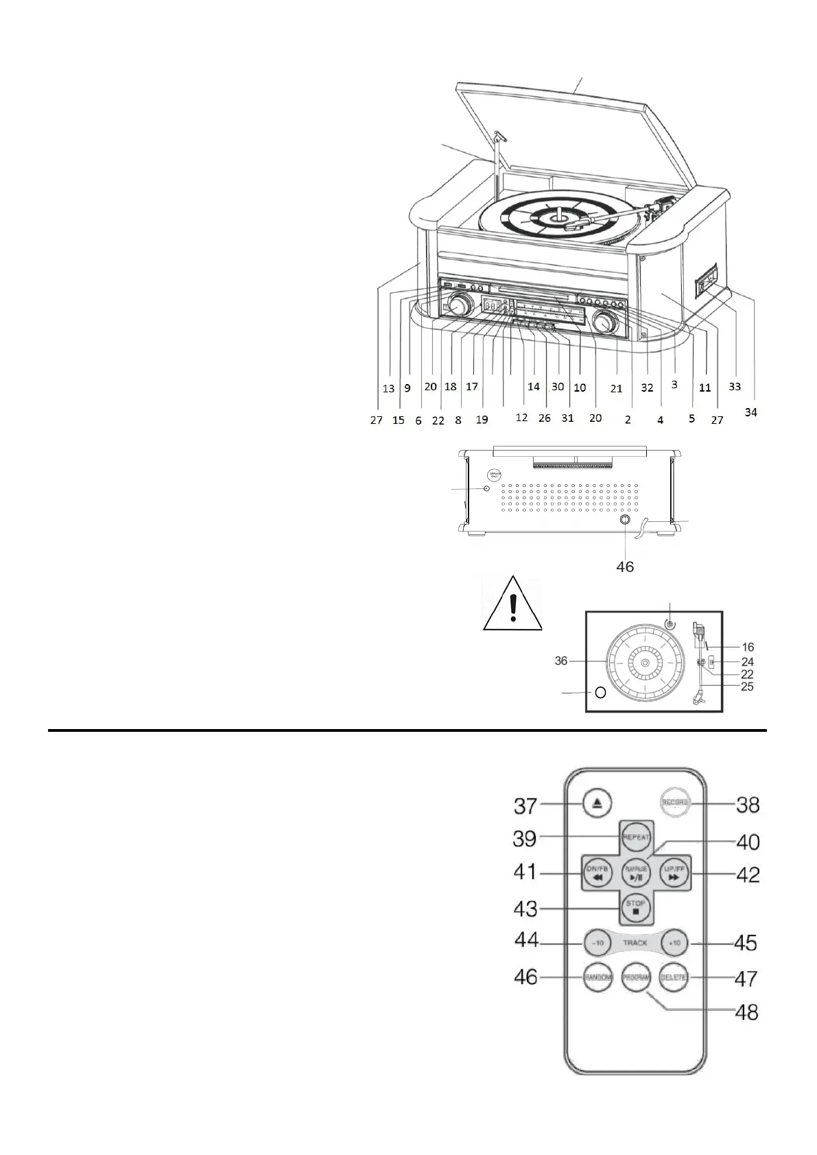 46) TASTO RANDOM: Premere il tasto in modalità CD / USB per attiva