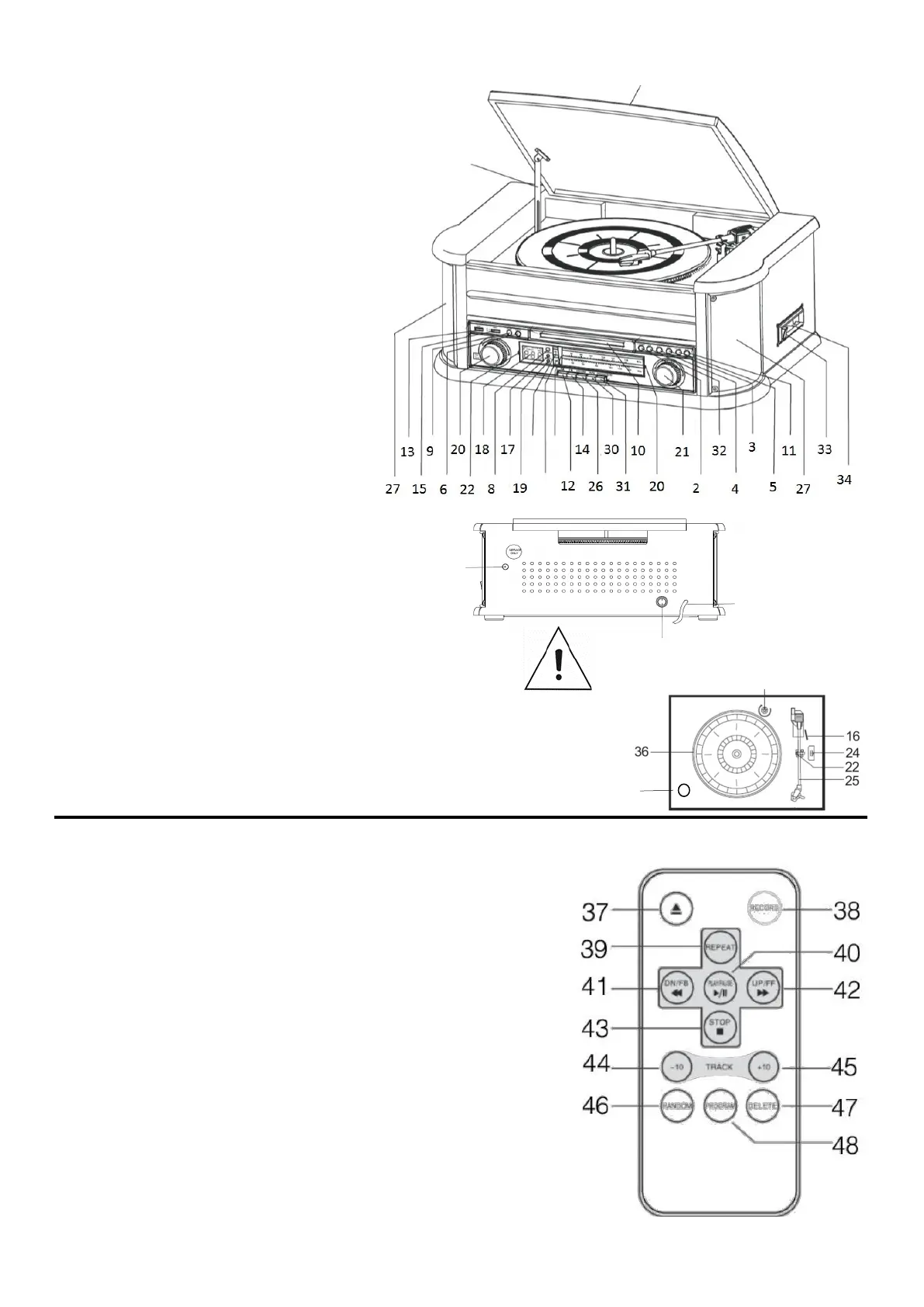 37) EJECT-TASTE: CD Fach öffnen / schließen.