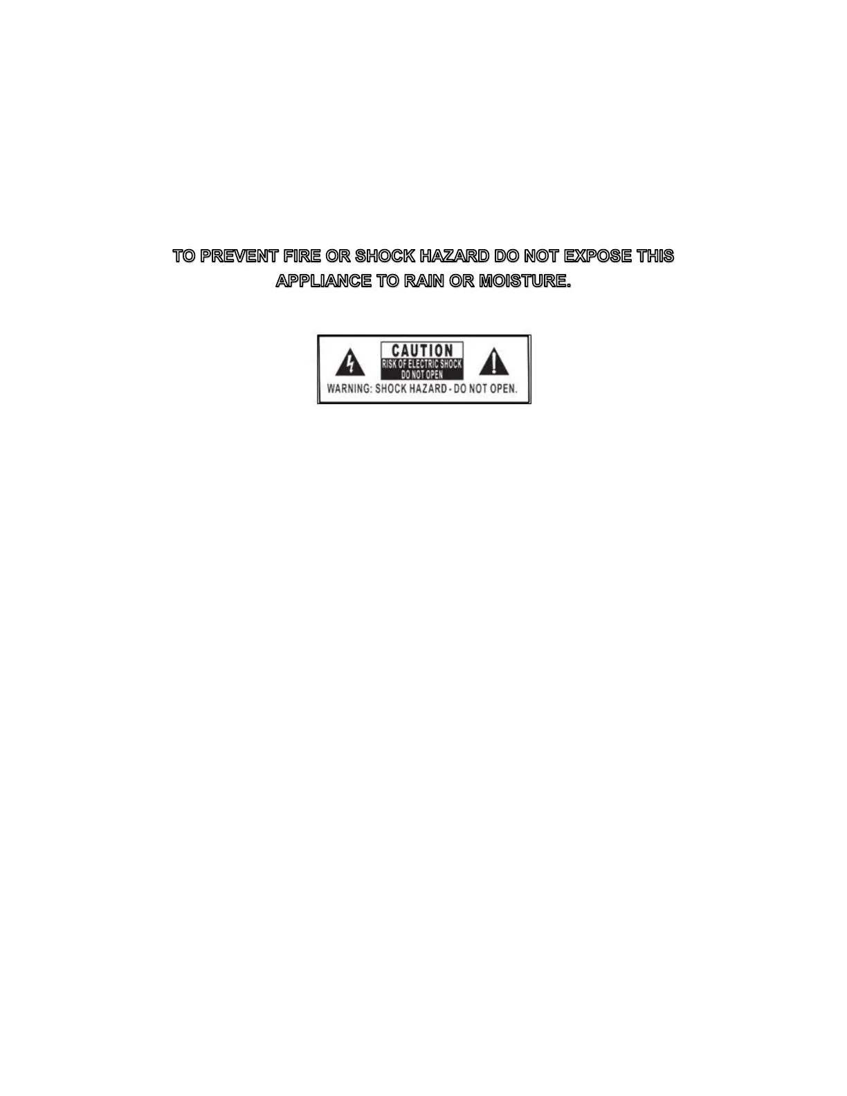 TO PREVENT FIRE OR ELECTRIC SHOCK HAZARD, DO NOT EXPOSE THIS