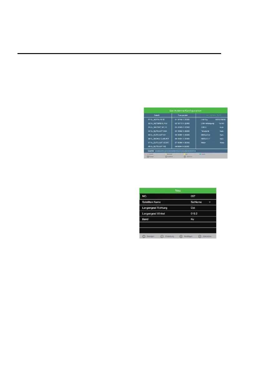 In dem Menü „Sat-Konfiguration“ haben Sie drei Menüspalten zu Auswahl.