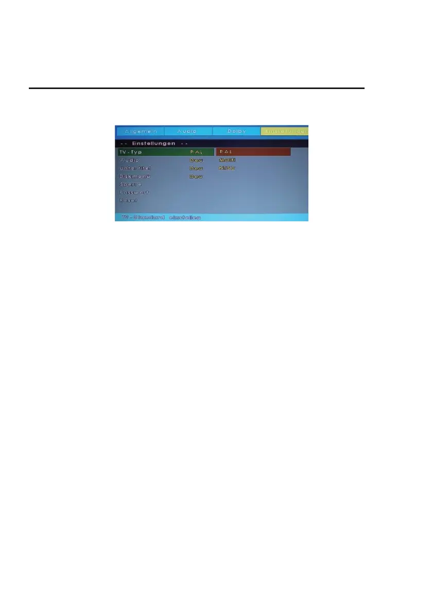 Stellen Sie hier das Farbsystem für die CD/DVD Wiedergabe ein.