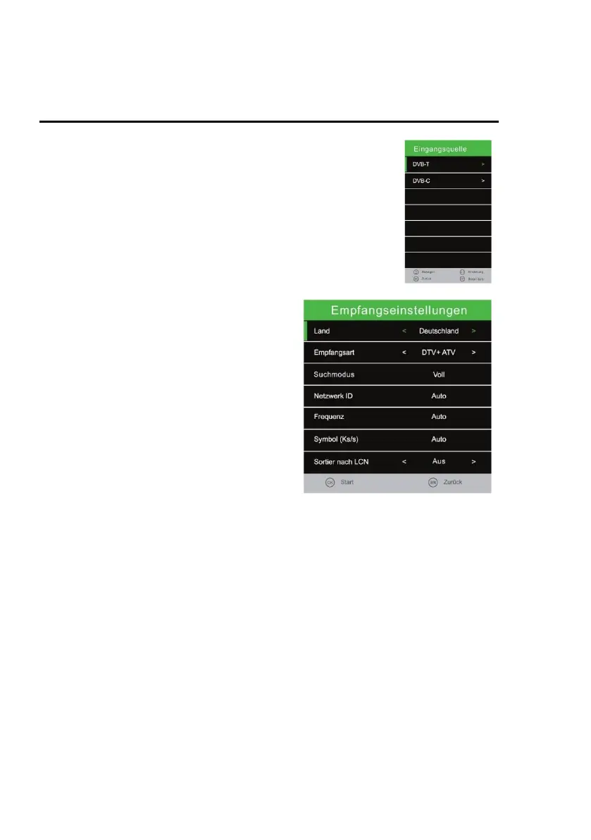 The Network ID / Frequency / Icon (ks / s) settings are only available for DVB-C.