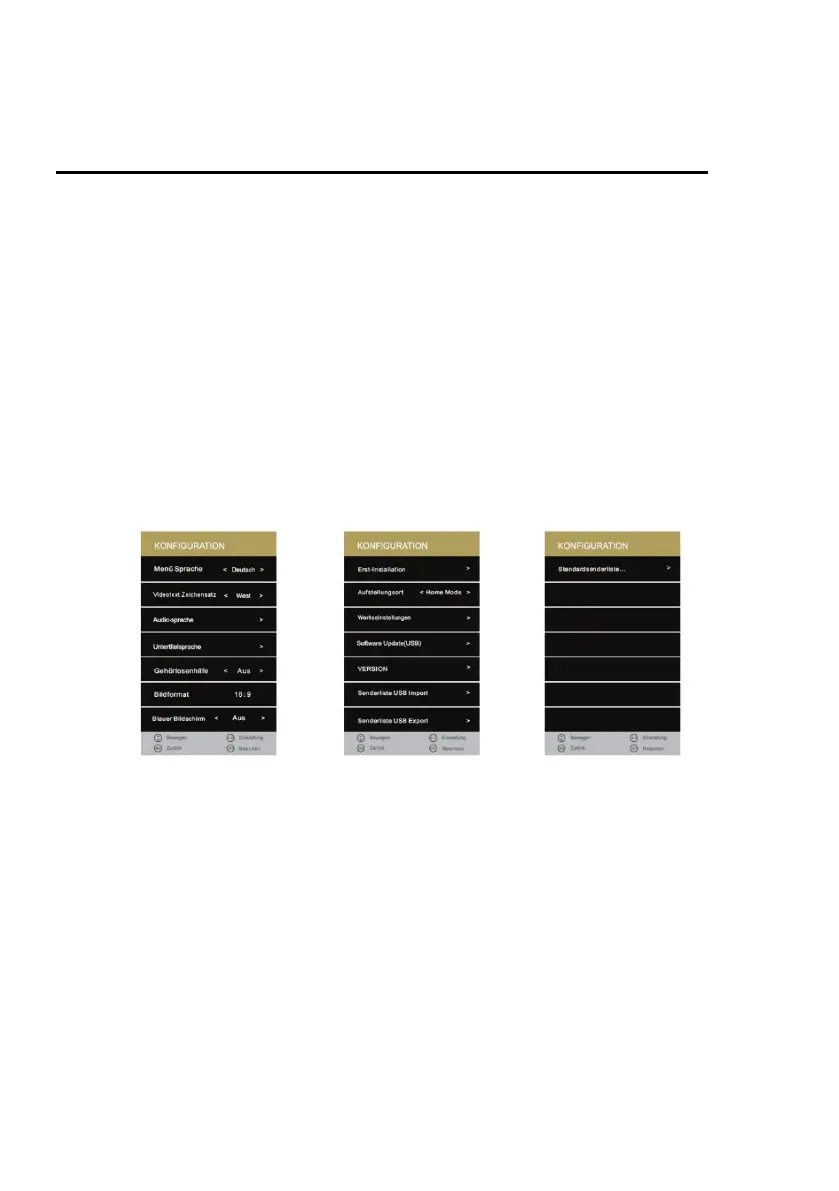 The following selection and setting options are available in the menu: