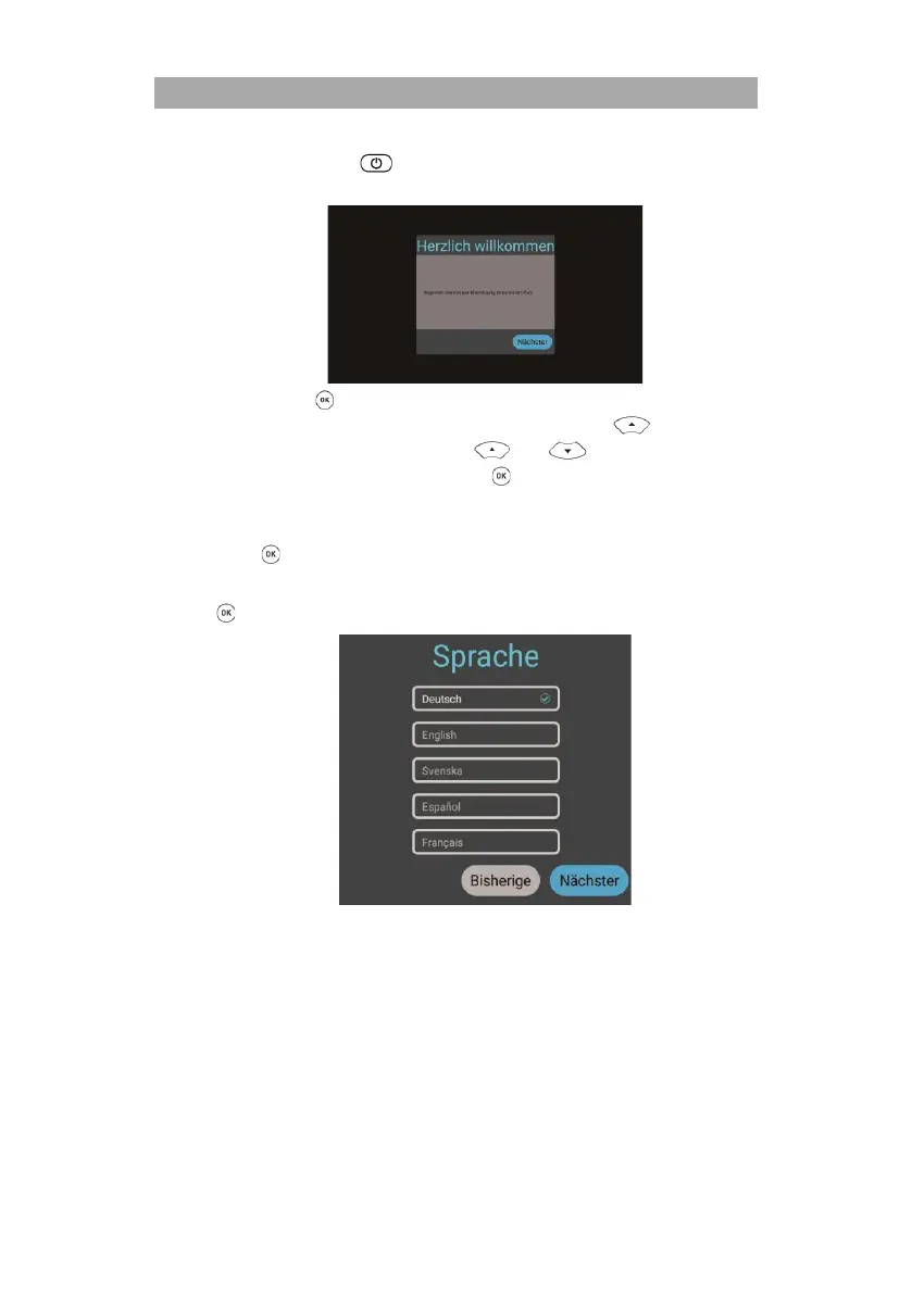 Menüsprache auszuwählen. Drücken Sie die Taste, um die Auswahl zu bestätigen.