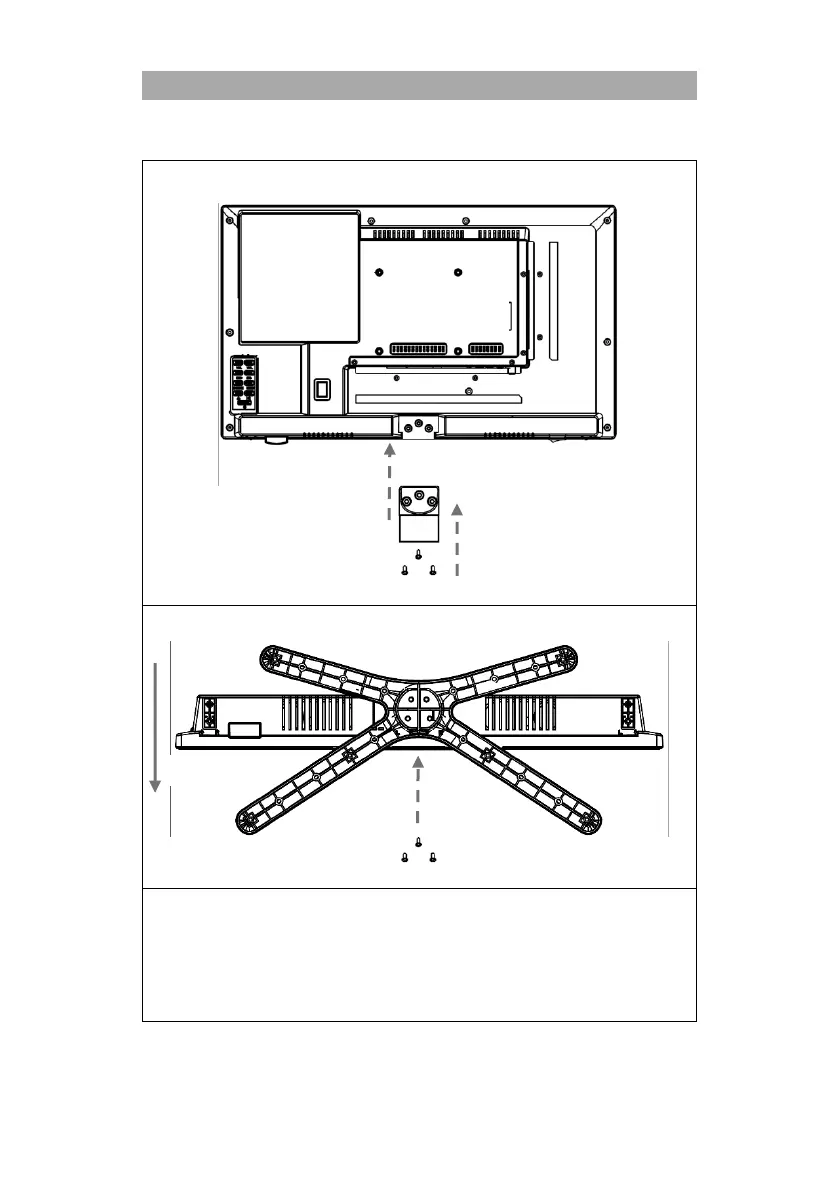 3. Hold the TV stand (D) against the underside of the centre piece (C) and ensure that it