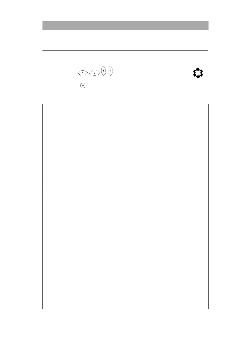 3. The following settings are available in the menu.