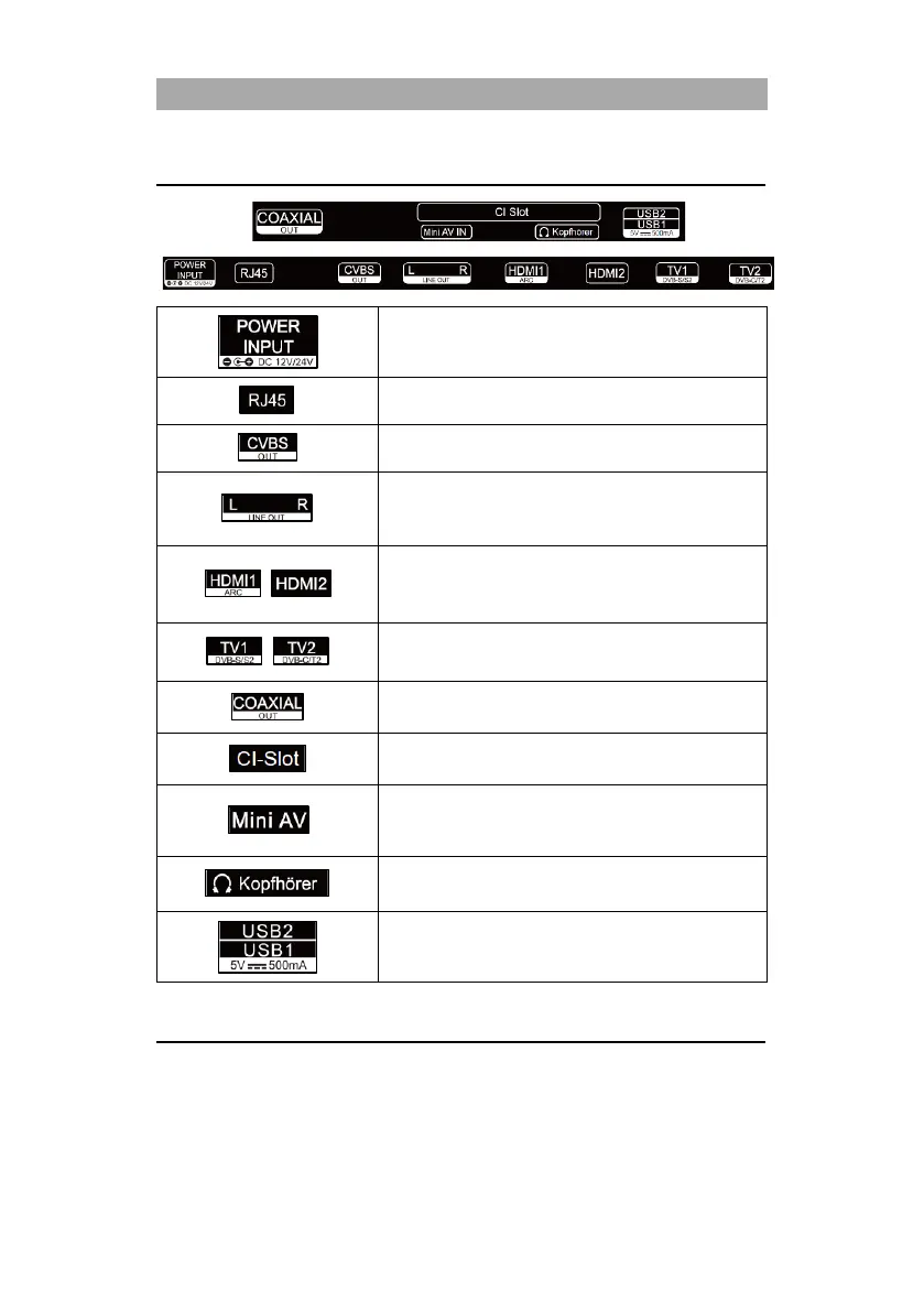 TV2: Anschluss der DVB-T Antenne oder der Kabelanlage.