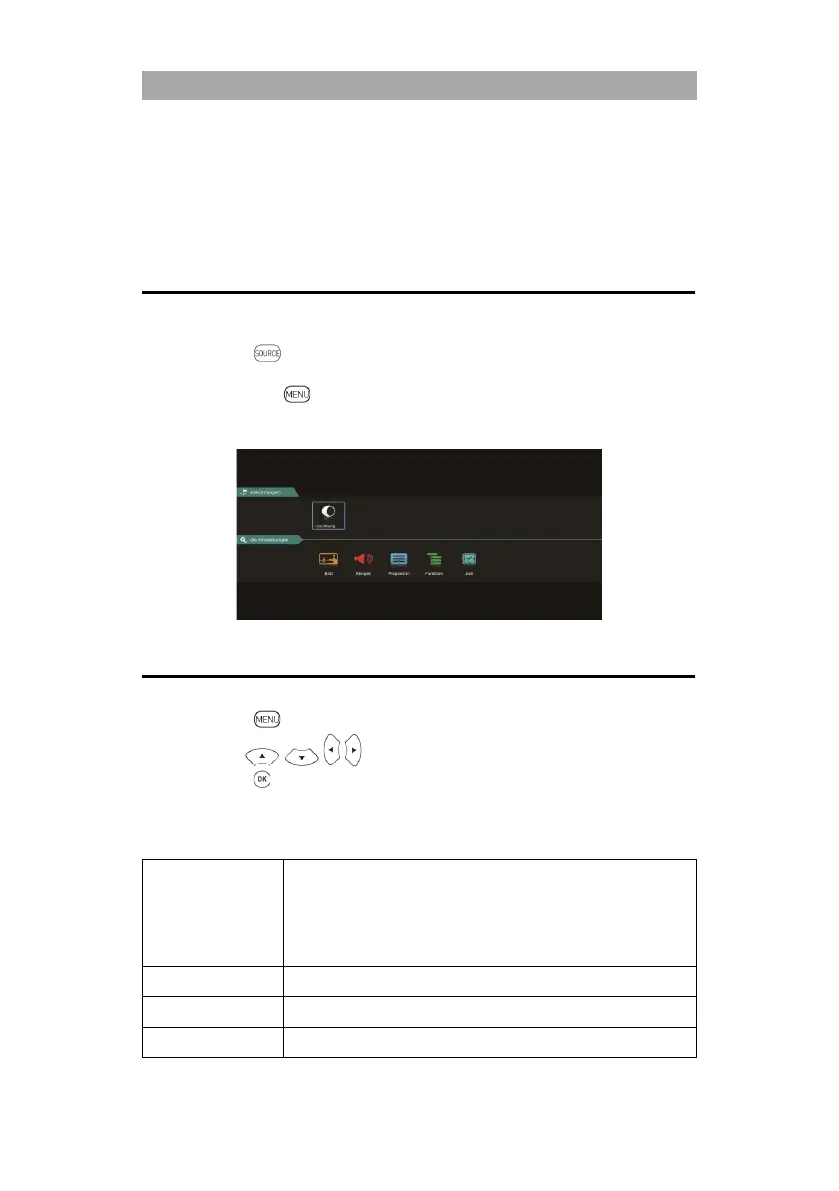 In the TV menu you can make various settings for picture / sound and program settings. To open