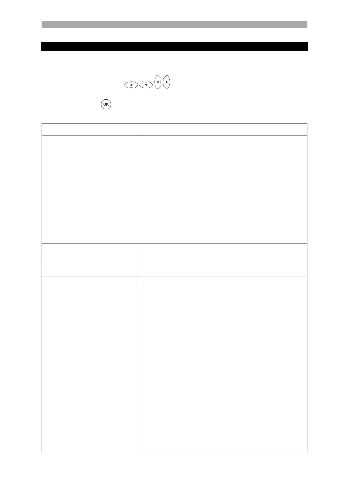 3. The following settings are available in the menu.