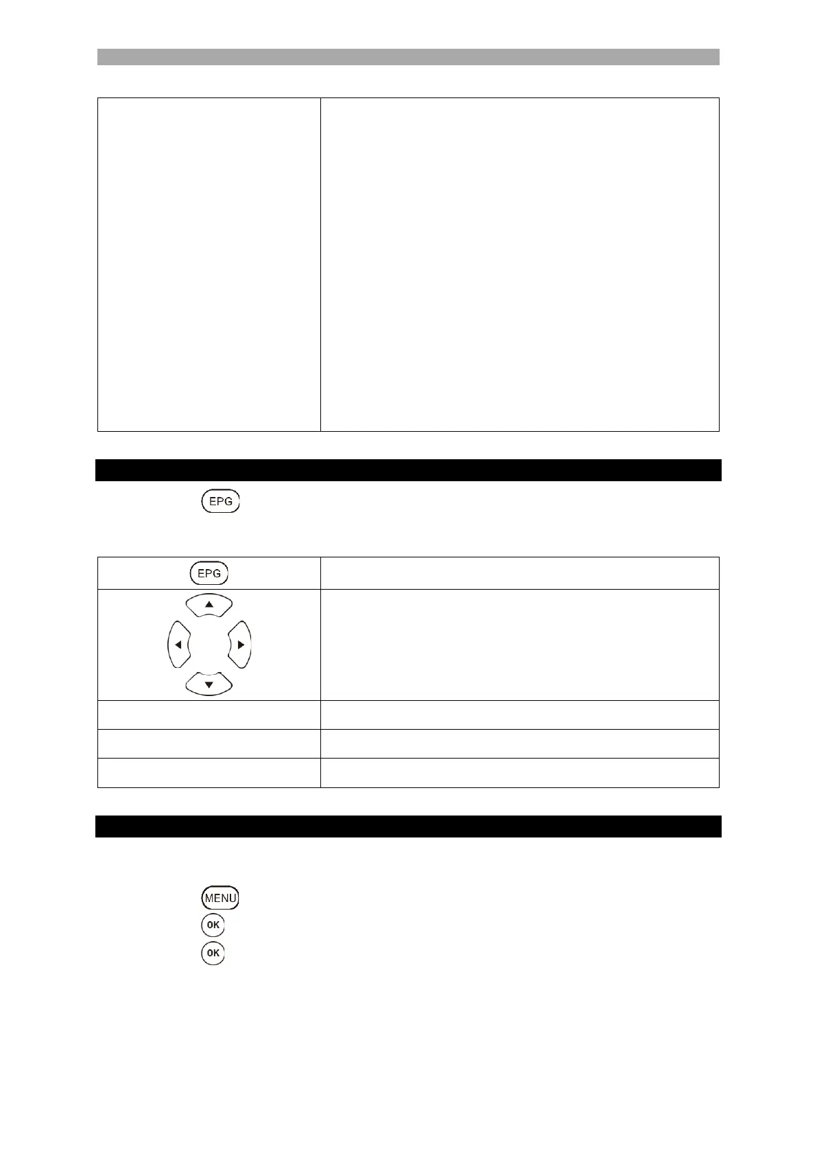2. Use the following buttons to operate the EPG menu.