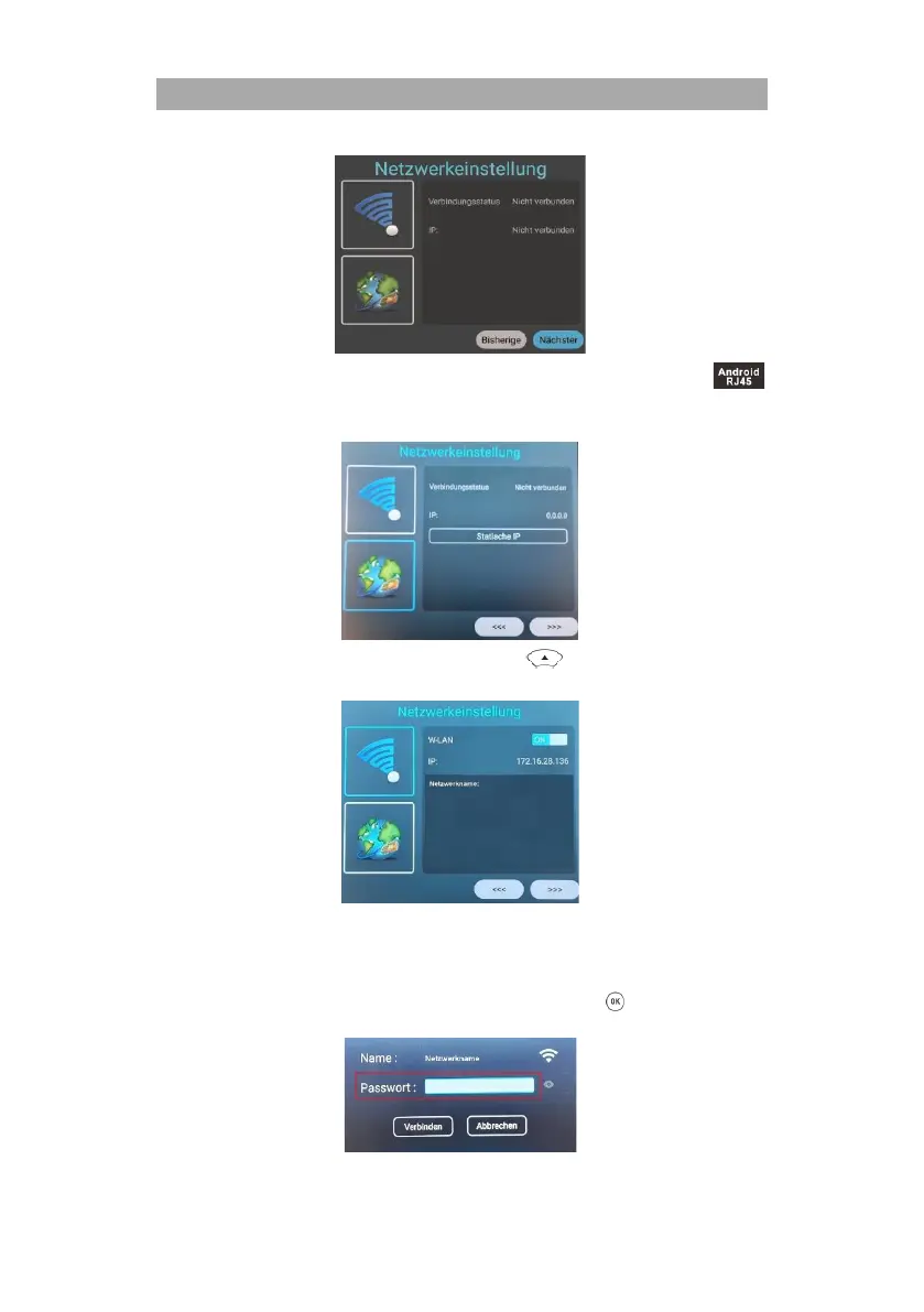 Buchse des TV Gerätes an. Die Netzwerk Einstellungen werden automatisch