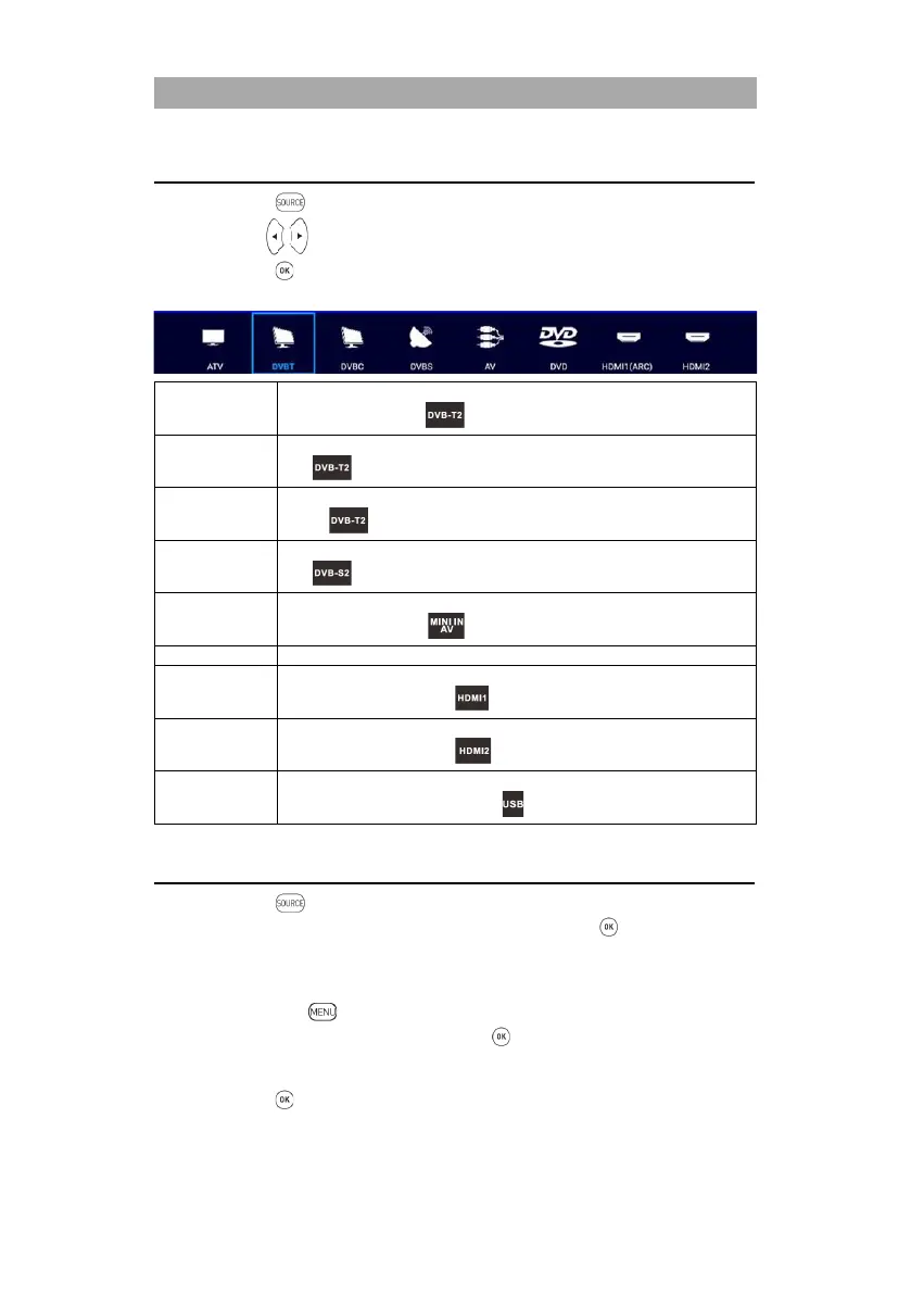 1. Press the button to display the input sources.