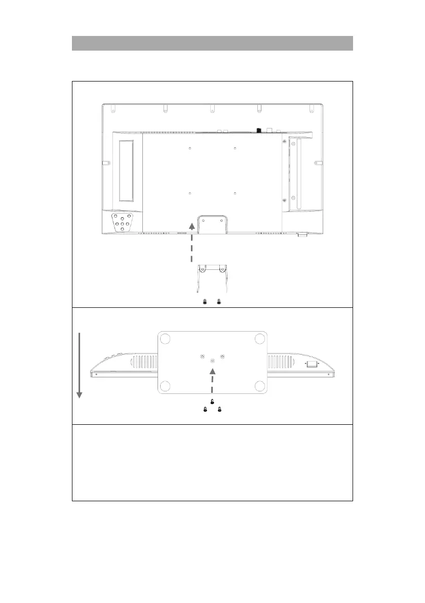 4. Schrauben Sie den Stand-Fuß (D) mit den Schrauben (E) an das TV Gerät.