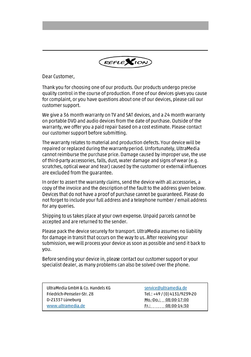 Reflexion LDDX22I+ - Warranty Information; Warranty Terms and Claims