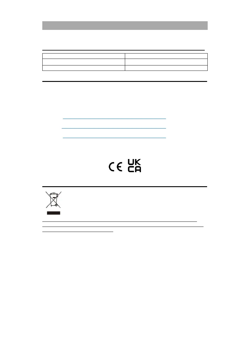The full text of the EU and UKCA Declaration of Conformity can be obtained from the following