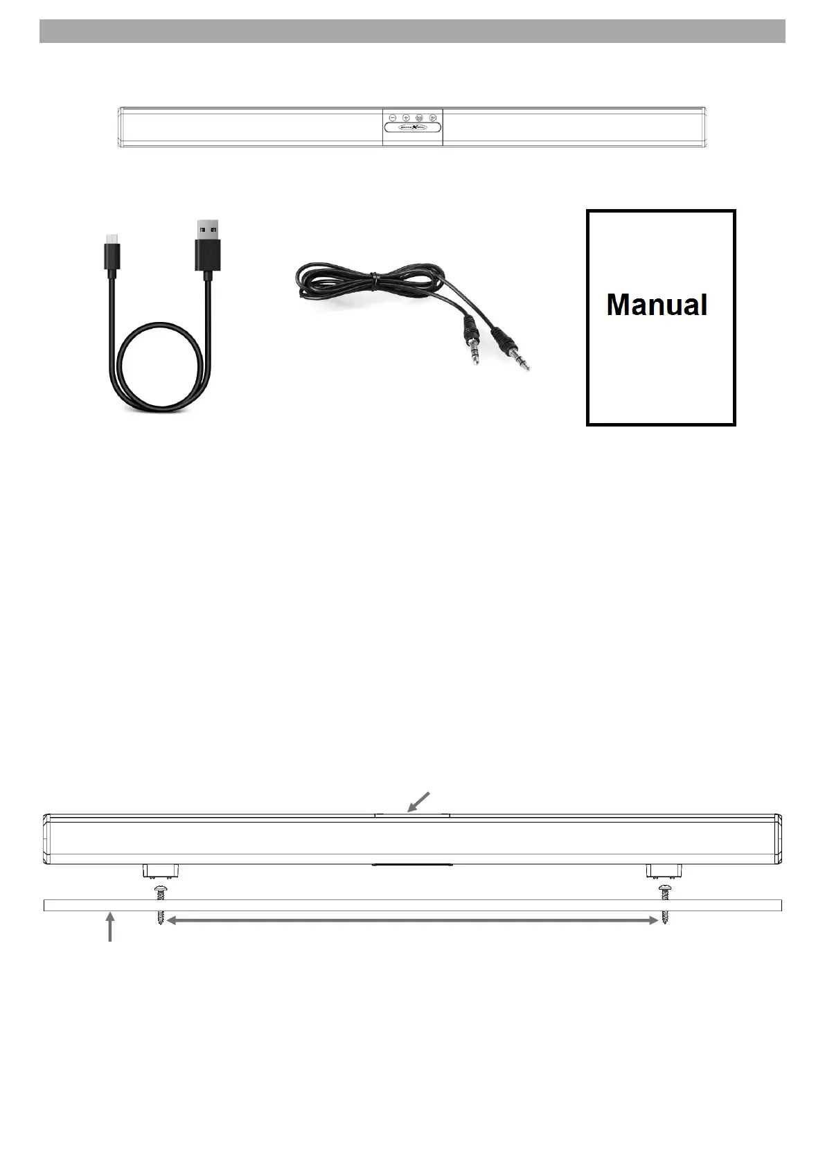 Die Soundbar kann bei Bedarf auch an eine Wand montiert werden. Benötigtes Montagematerial, Schrauben