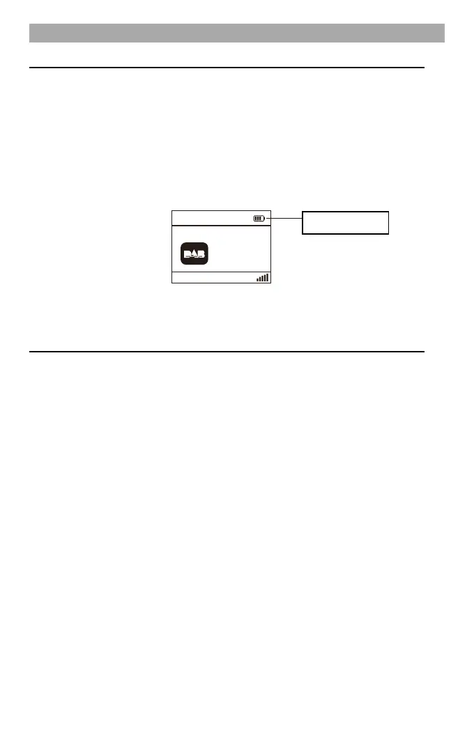 When the device is switched on, the charging status is shown in the top