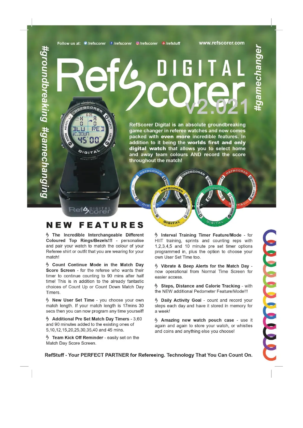 RefStuff RefScorer - New Features; Interchangeable Coloured Top Rings; Match Day Timer Options; User Set Time & Interval Training