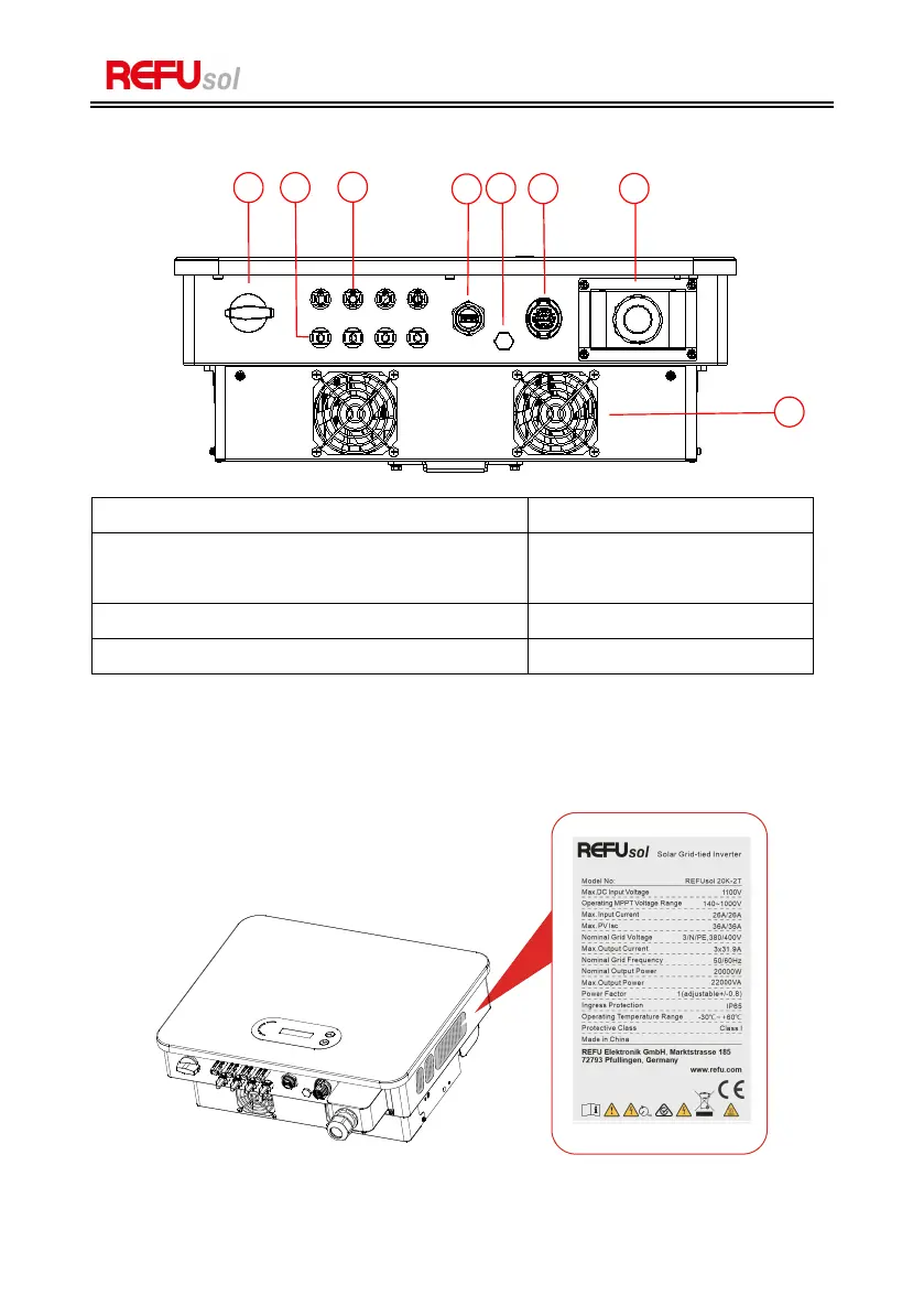 Figure 2-6 Bottom view of the REFUSOL 20K-2T (853P020.200)