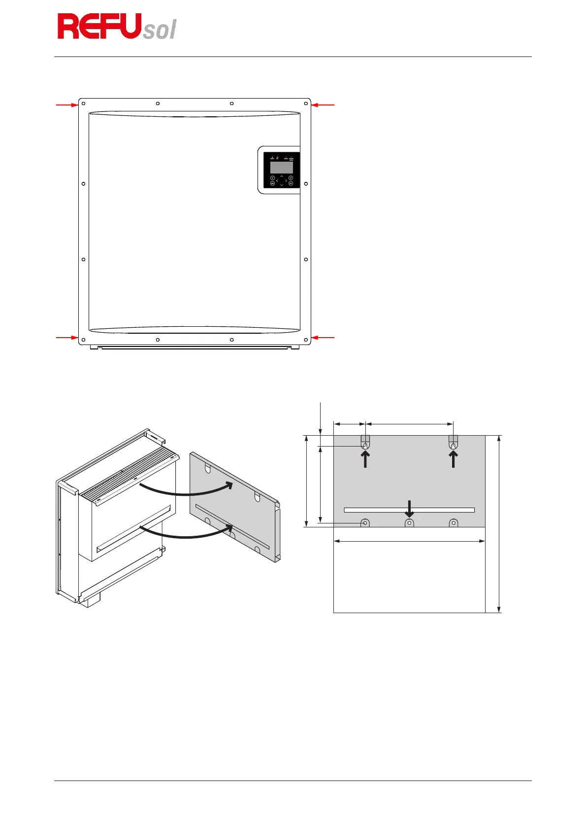 The inverter is mounted using the wall-mounting plate which is included in the scope of delivery.