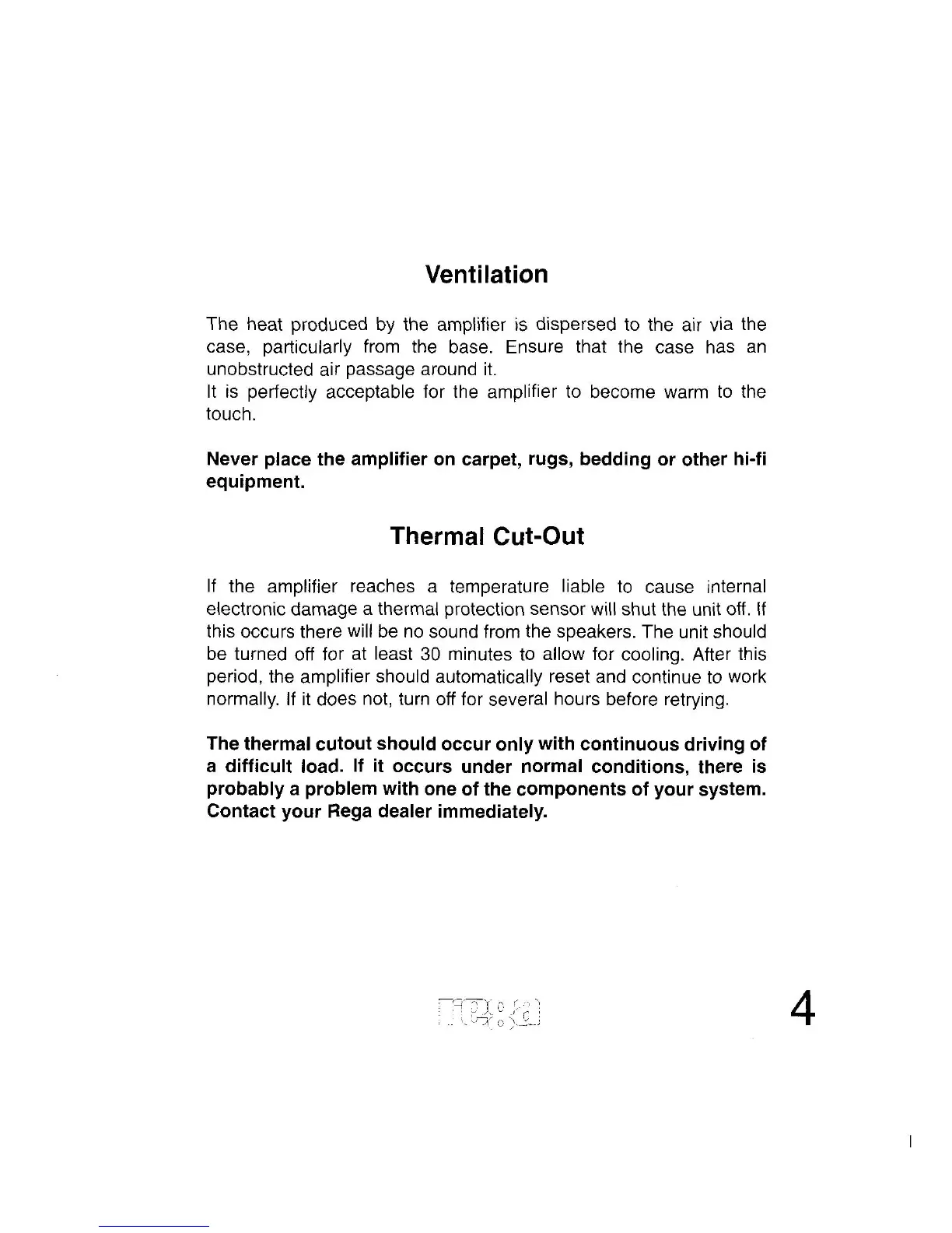 Rega Maia 3 - Ventilation; Thermal Cut-Out