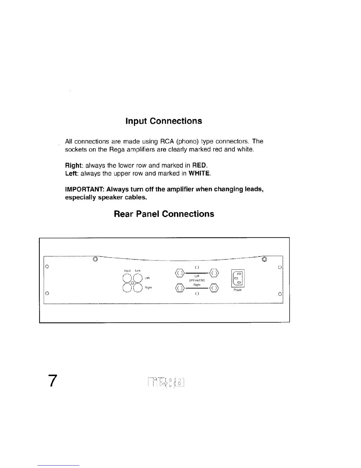 Rega Maia 3 - Input Connections; Rear Panel Connections