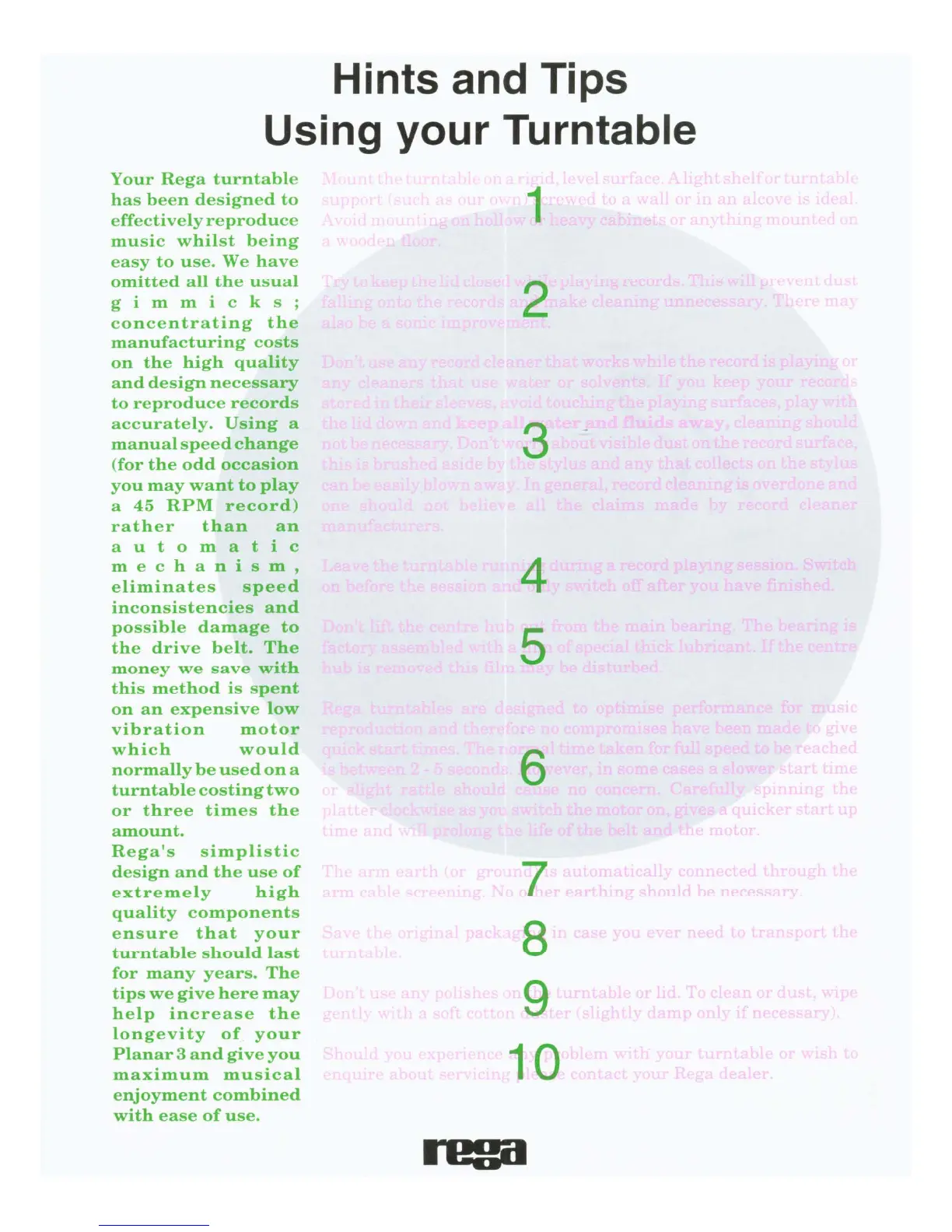 Rega Planar 3 - Hints and Tips; General Turntable Usage Advice