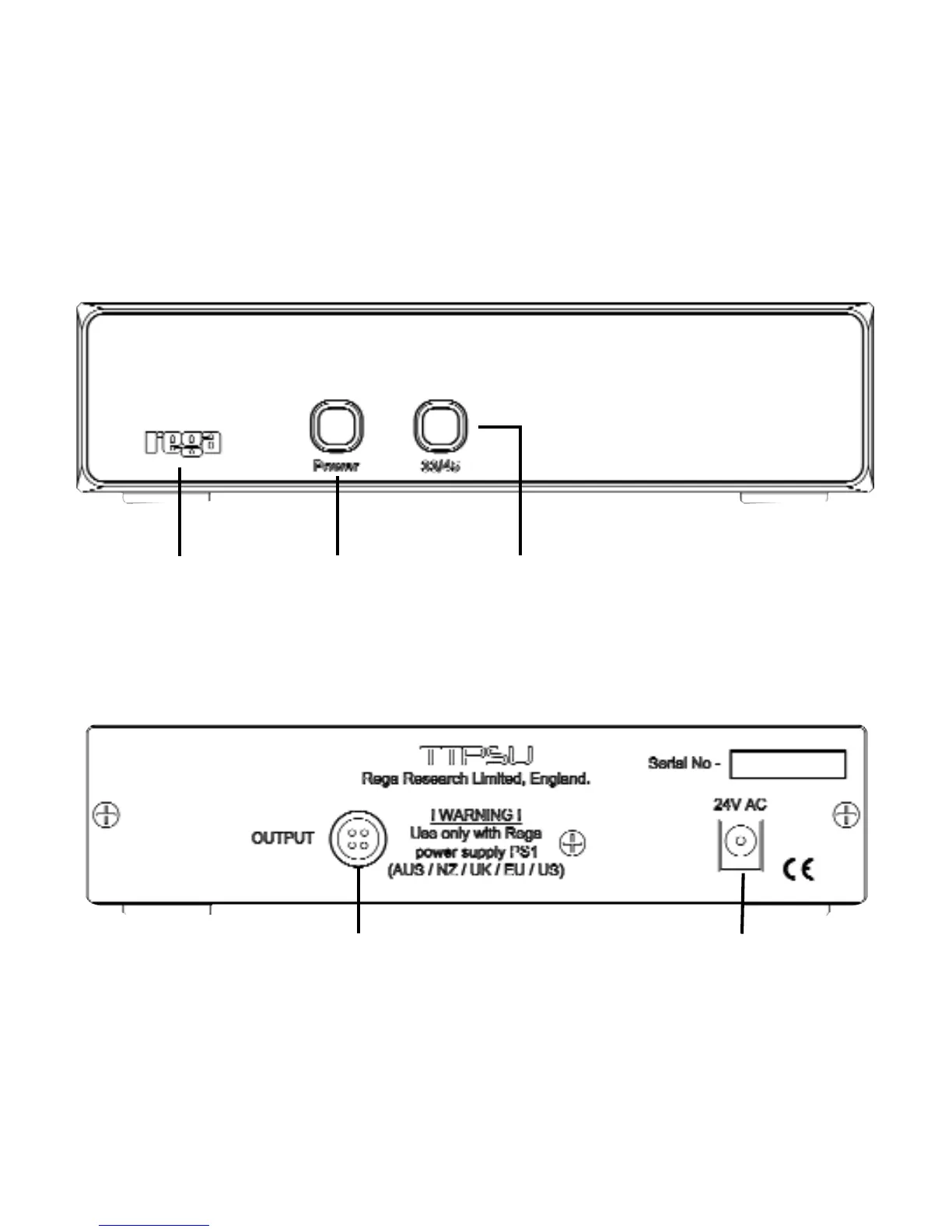 Rega TTPSU - Front Panel Controls; Rear Panel Connections