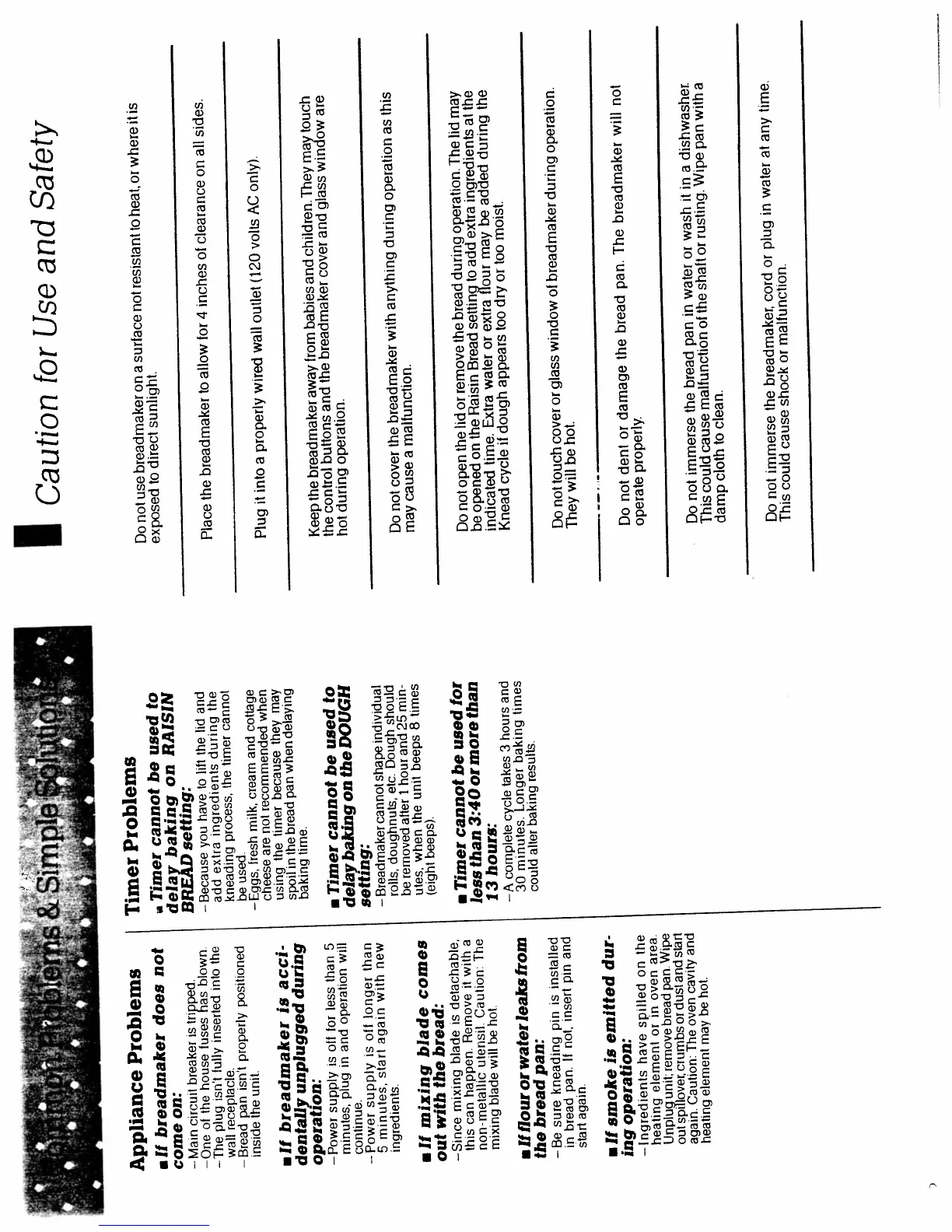 Regal Ware K6772 - Caution for Use and Safety; Problems & Simple Solutions; Appliance Problems; Timer Problems