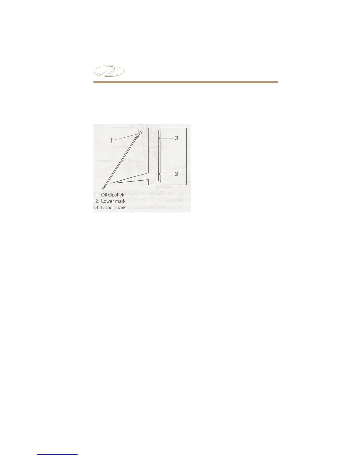 4. e oil level should be between the upper and lower dipstick holes