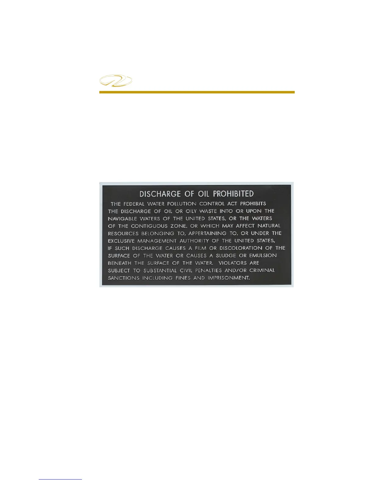 waters. Vessels 26’and larger must display a placard at least 5” x 8”,