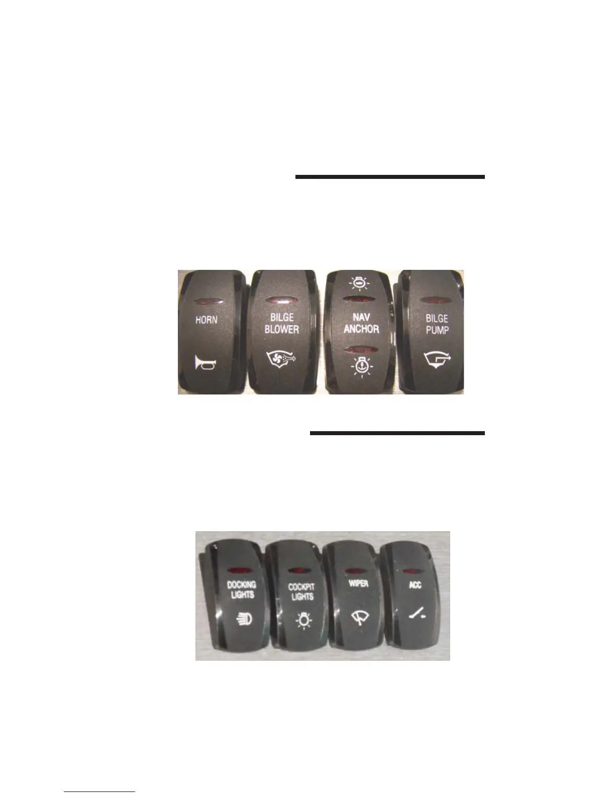 light switch, and a manual bilge pump switch. A red light shows