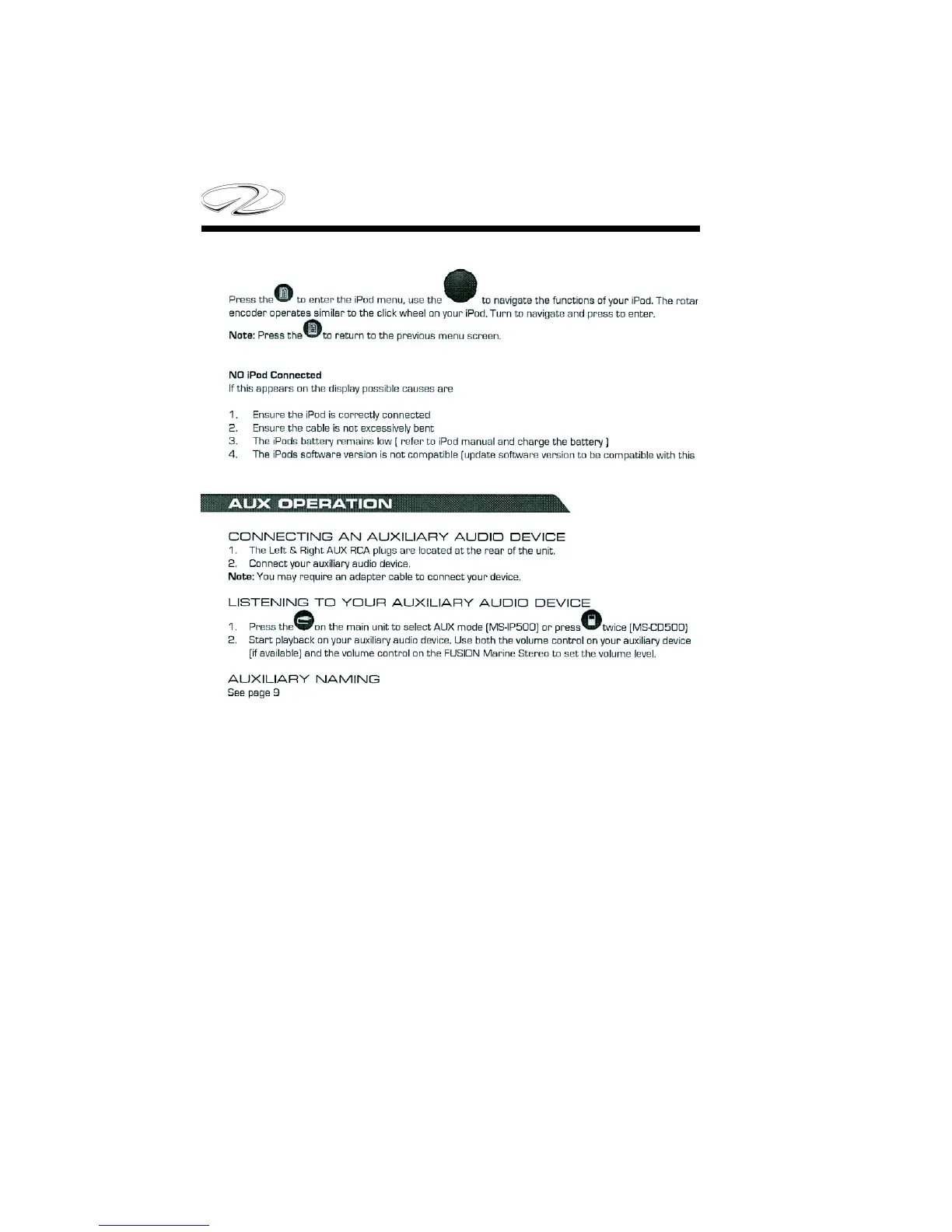 Regal 2100 - Aux Operation; Connecting an Auxiliary Audio Device; Listening to Your Auxiliary Audio Device; NO Ipod Connected