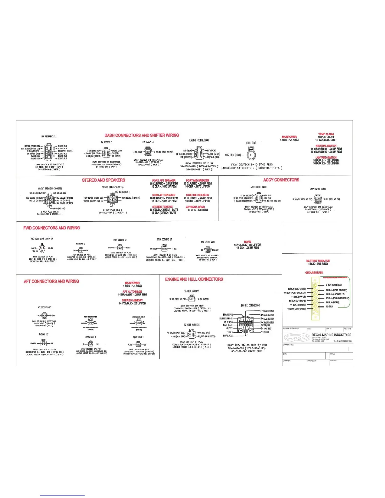 Regal 2100 - AFT Connectors and Wiring; Dash Connectors and Shifter Wiring; Engine and Hull Connectors; Stereo and Speakers